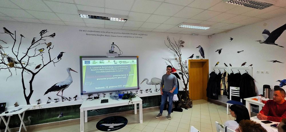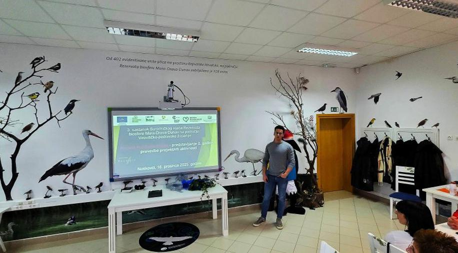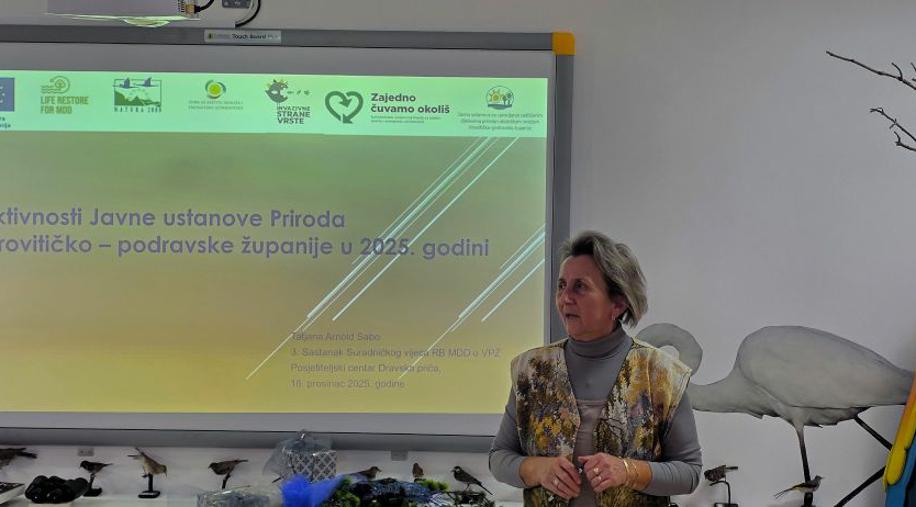 Nakon uvodnih riječi, predsjednica Suradničkog vijeća Rezervata biosfere, Tatjana Arnold-Sabo, prezentirala je aktivnosti Javne ustanove Priroda Virovitičko-podravske županije tijekom 2025. godine i nove projekte u realizaciji, a voditelj bio istraživačke stanice, Vladimir Juhaz, prezentirao je rezultate nakon 2. godine provedbe projekta LIFE RESTORE for MDD.