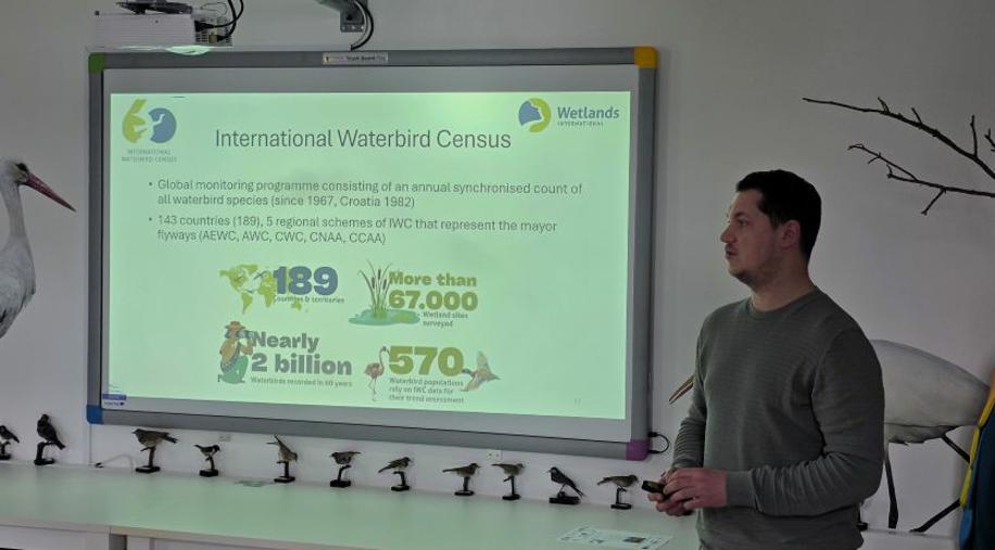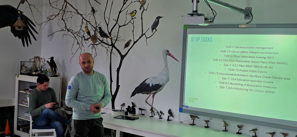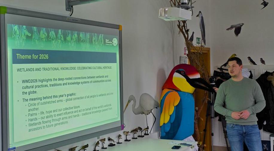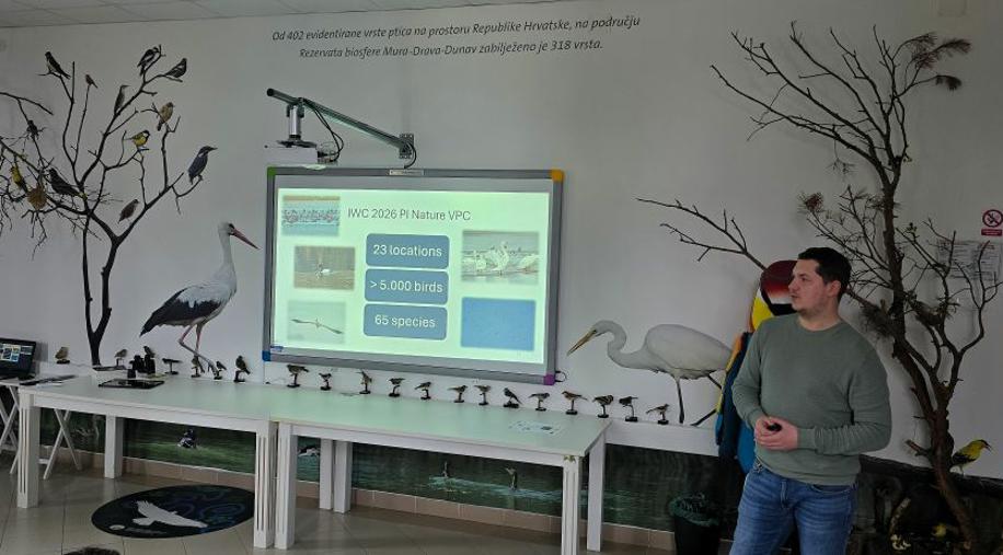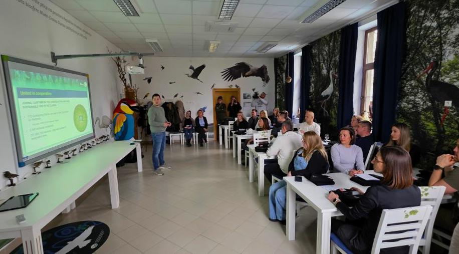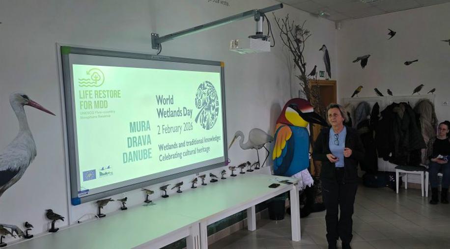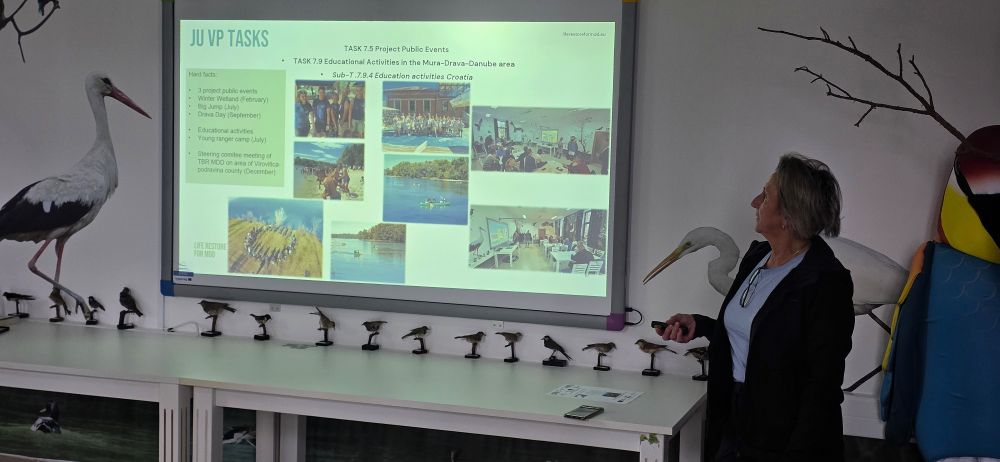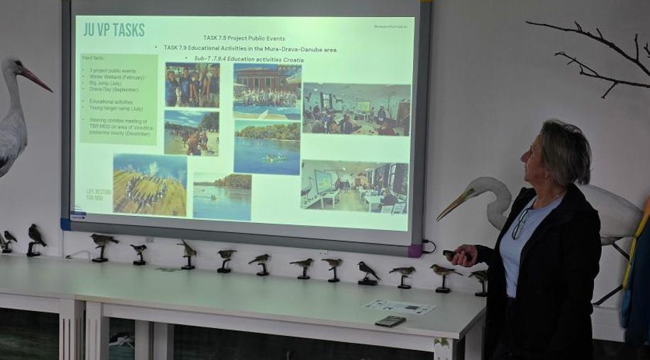 Nakon pozdravnih riječi, članovi projektnog tima JU VPŽ, voditelj bioistraživačke stanice, Vladimir Juhaz održao je prezentaciju o Svjetskom danu vlažnih staništa, a ravnateljica, Tatjana Arnold-Sabo i glavni čuvar prirode, Vladimir Ajhler prezentirali su projekt LIFE RESTORE for MDD i provedene aktivnosti Javne ustanove u 2025. godini. U nastavku, Vladimir Juhaz je prezentirao trenutne rezultate zimskog prebrojavanja ptica vodarica na području Virovitičko-podravske županije u kojem djelatnici Javne ustanove već tradicionalno sudjeluju. Na događaju su uz ostale sudionike, sudjelovali i menadžerica projekta Lisa Wolf, WWF Austrija i projektni partneri iz Hrvatskih voda.
