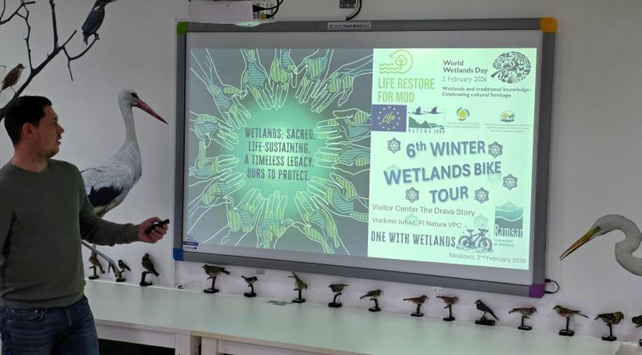 Danas, 2. veljače 2026. godine, povodom obilježavanja Svjetskog dana vlažnih staništa, a u sklopu provedbe projekta Očuvanje i obnova poplavnih šumskih staništa duž rijeka Mura-Drava-Dunav/Preserving and restoring floodplain forest habitats along the Mura-Drava-Danube rivers – LIFE22-NAT-AT-LIFE RESTORE for MDD /101113557, Javna ustanova za upravljanje zaštićenim dijelovima prirode i ekološkom mrežom Virovitičko-podravske županije organizirala je već tradicionalnu zimsku biciklijadu pod nazivom 6. Winter Wetlands Bike Tour.
