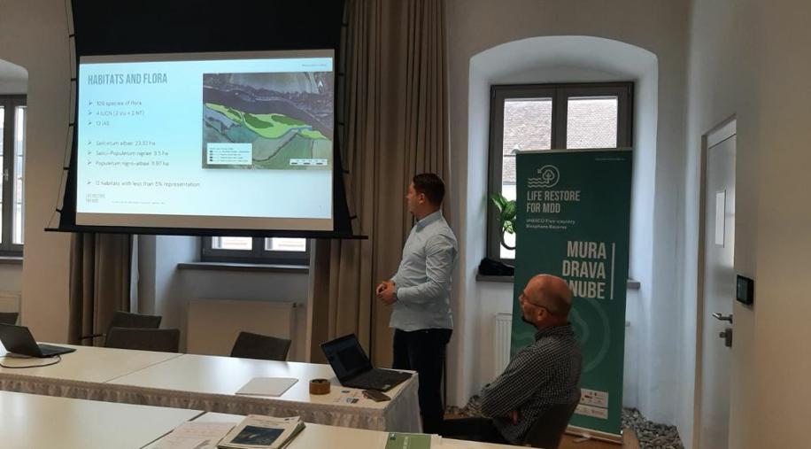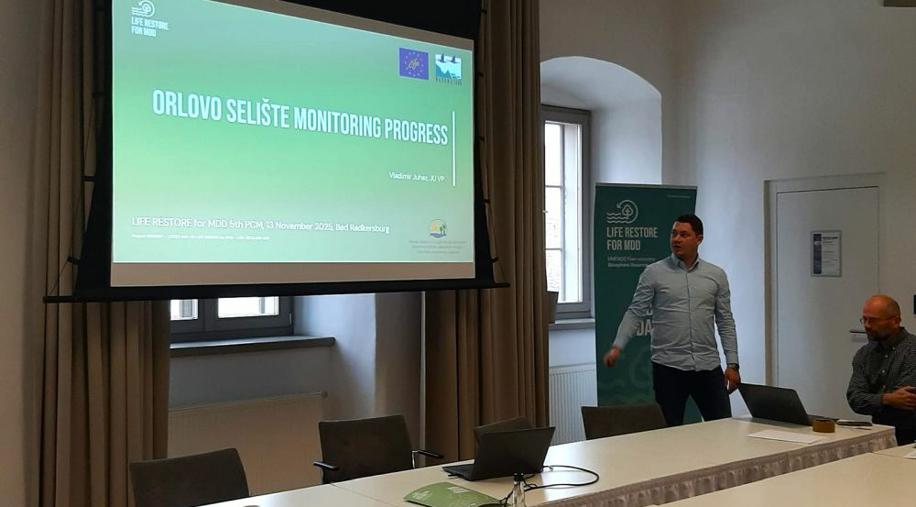 Aktivnosti u Bad Radkersburgu su nastavljene održavanjem 5. sastanka projektnih partnera na realizaciji projekta Preserving and restoring floodplain forest habitats along the Mura-Drava-Danube rivers (Project 101113557 — LIFE22-NAT-AT-LIFE RESTORE for MDD) od 11. do 14. studenog 2025. godine. Projektni partneri raspravili su o rezultatima kontrolnog pregleda područja realizacije projekta od strane predstavnika programa LIFE krajem listopada, kao i o svim radnim paketima i aktivnostima koje su u realizaciji ili tek predstoje. Raspravljena je i dinamika realizacije i financiranja projektnih aktivnosti svakog od partnera. O aktivnostima istraživanja i monitoringa na području realizacije projekta u Virovitičko-podravskoj županiji, na lokaciji Orlovo selište, prezentaciju je održao Vladimir Juhaz, član projektnog tima JU Priroda VPŽ i Voditelj bio istraživačke stanice. U sklopu 5. sastanka projektnih partnera održan je i Sajam lokalnih proizvoda sa područja RB MDD, na kojem je naša Javna ustanova, uz potporu Turističke zajednice Virovitičko-podravske županije, a zajedno sa partnerom Hrvatske vode, VGO Osijek, imala zajednički štand.