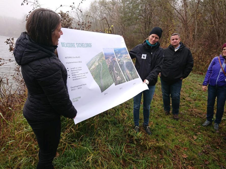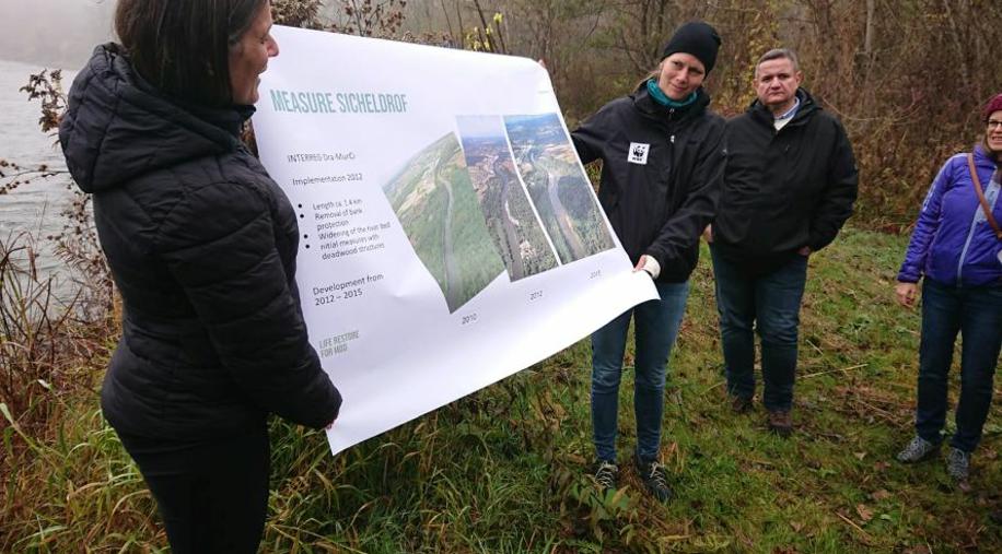 Sastanak projektnih partnera završio je terenskim obilaskom područja restauracije na rijeci Muri. (Foto: JU VPŽ, Gerhard Schleich)
